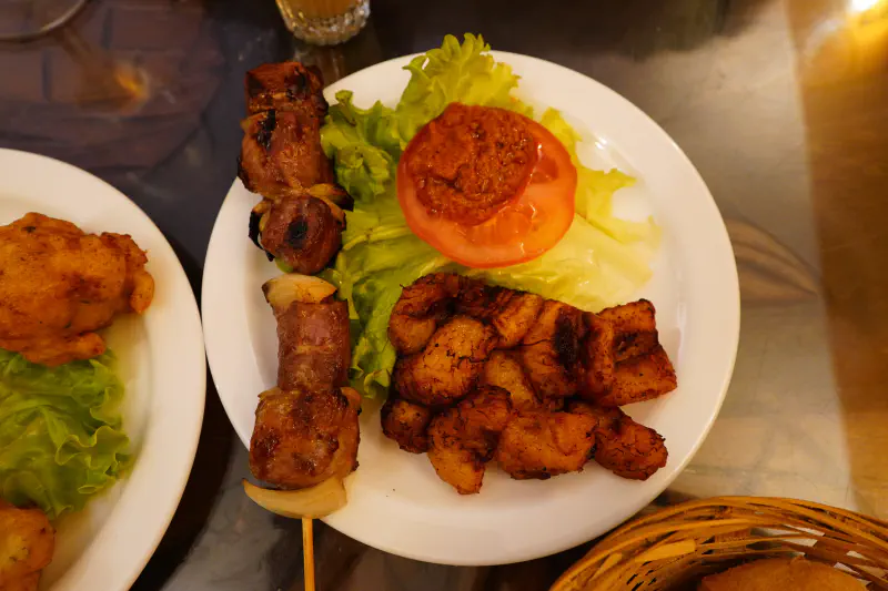 Brochette de grillades et bananes plantains