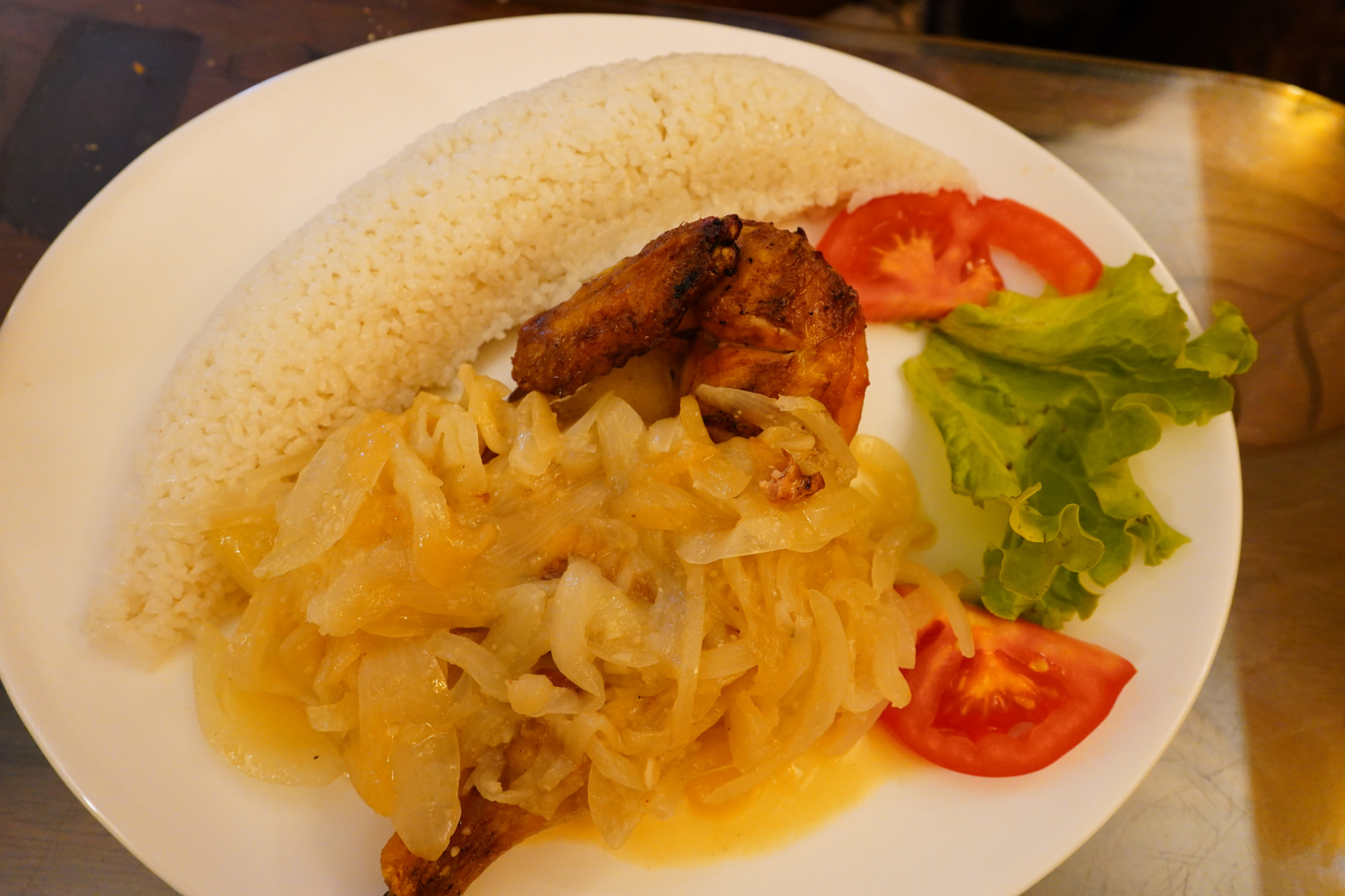 Poulet aux oignons, citron et riz